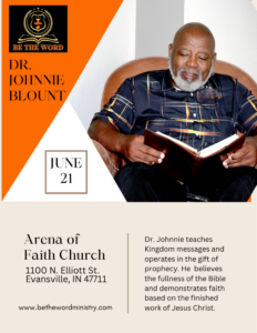 Dr. Johnnie speaks at Arena of Faith Church on Father’s Day Sunday, June 21st at 1pm Central time. 1100 N. Elliott St. Evansville, IN 47711